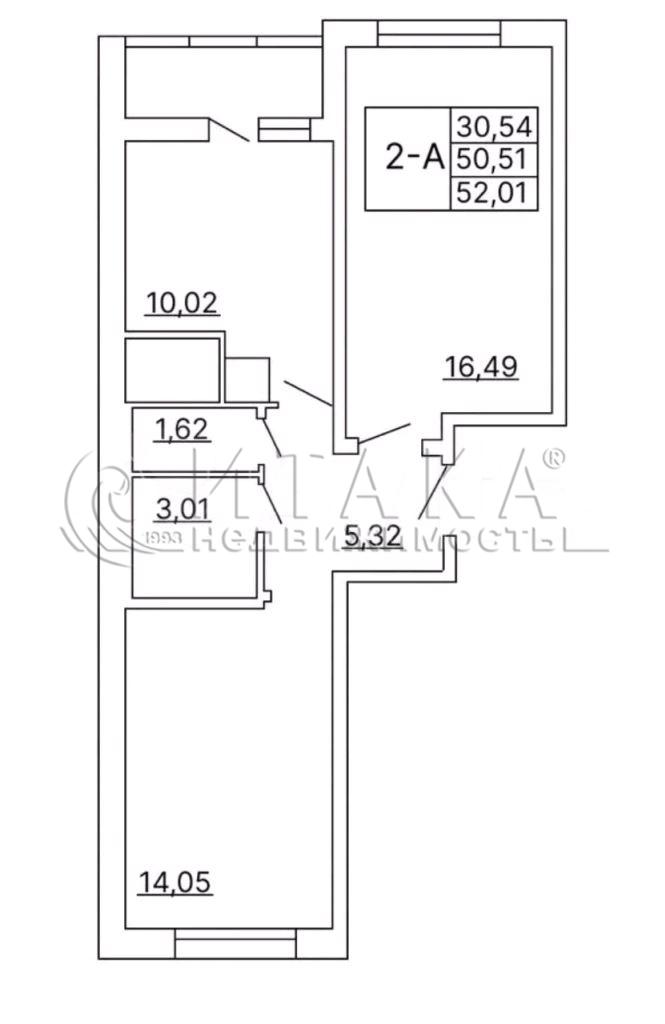 2-комнатная квартира 52 м², этаж 17/18