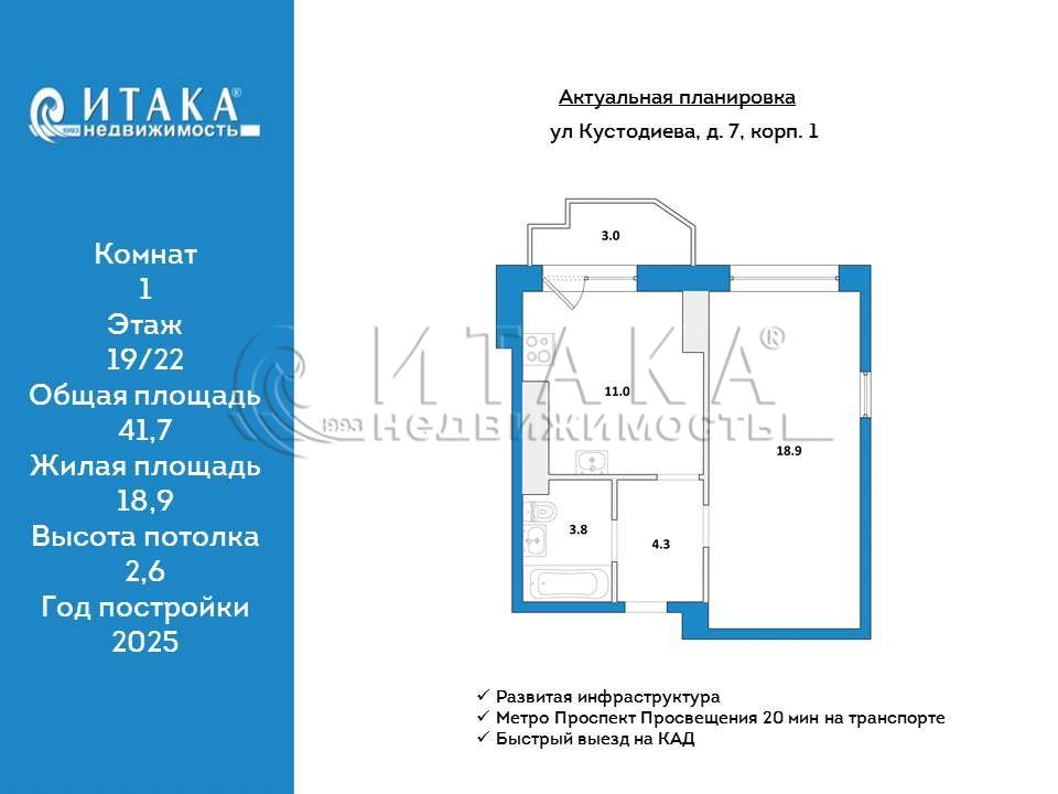 Проспект Просвещения г Санкт-Петербург, ул Кустодиева, д. 7, корп. 1