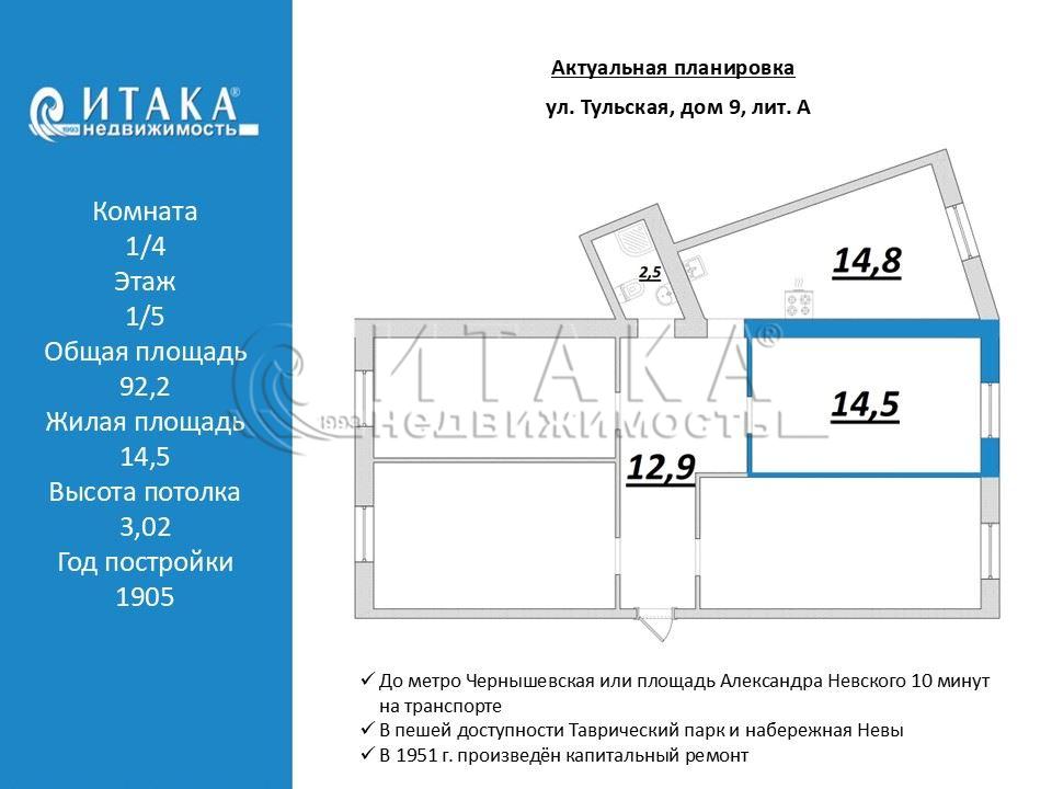 В прямой продаже комната 14,5 кв. м в малонаселенной квартире. Кухня 14 кв.м, есть свое место, при желании можно поставить холодильник и стиральную машинку. В коридоре есть большая антресоль для хранения личных вещей. Рядом есть все необходимое для комфортной жизни. В пешей доступности Таврический парк и набережная Невы. До метро Чернышевская или площадь Александра Невского 10 минут на транспорте. Один взрослый собственник, на сделке будет лично Документы к сделке готовы (два отказа и одно уведомление). Возможен быстрый выход на сделку. Звоните и приходите на просмотр!