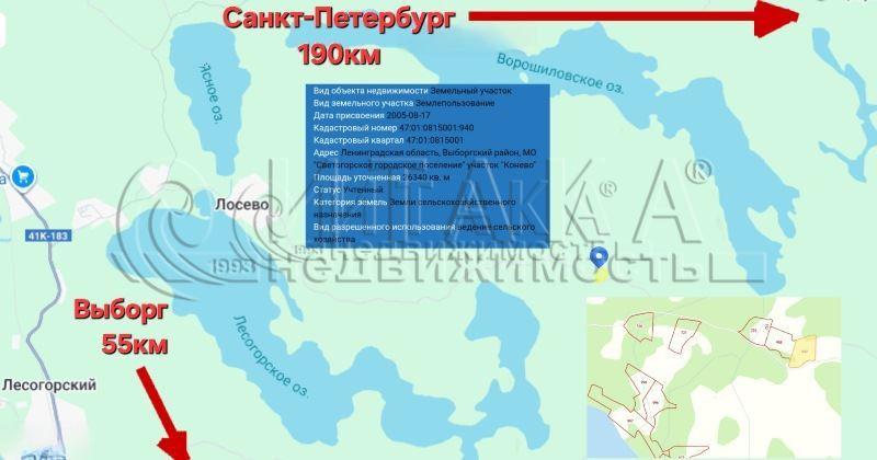 2-17560 Предлагается к продаже земельный участок площадью 263 сотки 2,6 га расположен по адресу: Ленинградская область, Выборгский р-н, МО Светогорское городское поселение, д. Лосево.Категория земель - земли сельскохозяйственного назначения, вид разрешённого использования для ведения сельского хозяйства.Кадастровый номер: 47:01::940, координаты: 61., 29..Есть уникальная возможность масштабирования, смежный, идентичный по площади участок также подготовлен к продаже.Участок ровный, межевание сделано.Круглогодичный подъезд. Удобный подъездной путь, съезд с дороги.Участок в уединённом месте, первозданная природа, ягодное и рыбное изобилие между озёрами Лесогорское и Ворошиловское.Безграничные возможности для создания эко-отеля, для глэмпинга, для фермы органических продуктов, агротуризм и рекреационно- туристический потенциал. Ощущение заповедника в объятиях двух озёр.Транспортная доступность на машине с трассы А-181 "Скандинавия", участок автодорога «Выборг — Светогорск».Земельный участок находится в собственности, без каких-либо обременений.1 собственник. Полное сопровождение сделки.Буду рада ответить на все остальные интересующие Вас вопросы по телефону.Личный выезд на показ в удобное для Вас время.С реальным покупателем цена обсуждается.Итака. Работаем с 1993 года.
